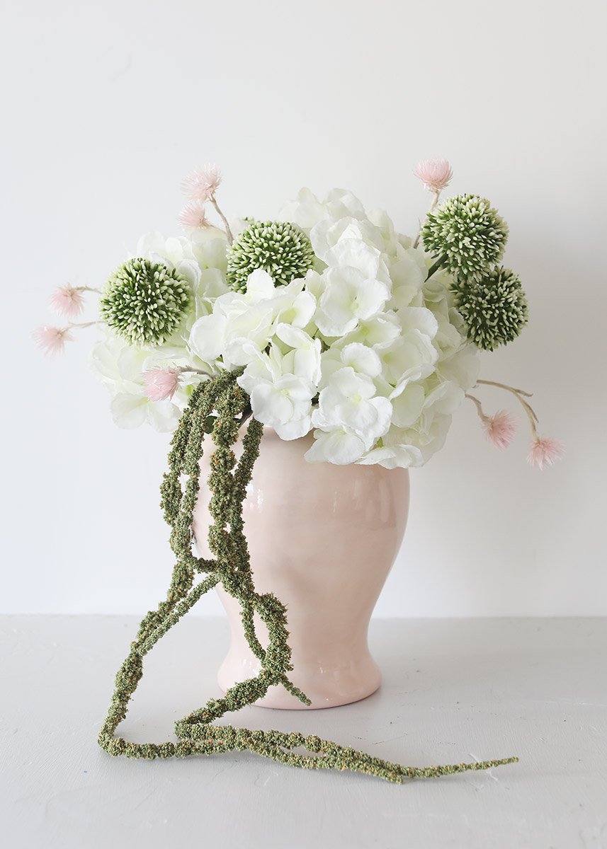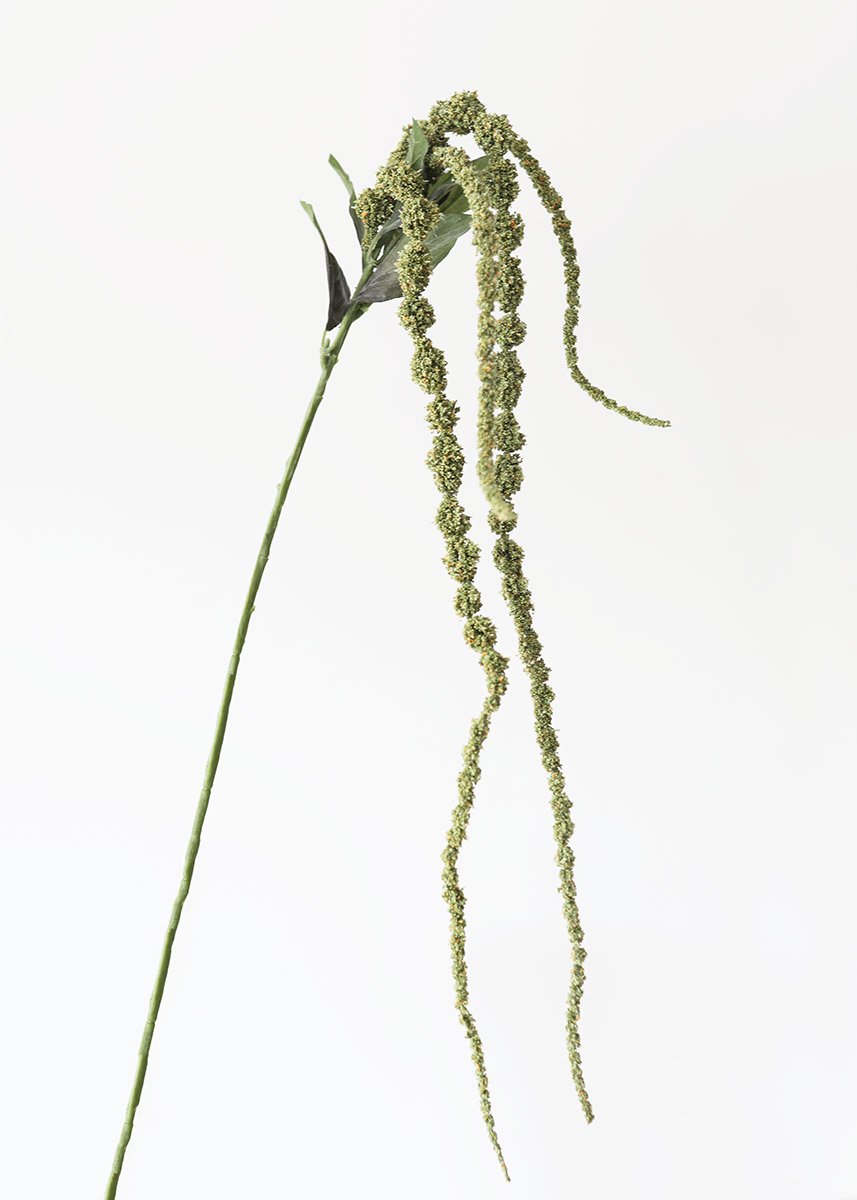 Gorgeous amaranthus spray in vivid green. Also known as a summer poinsettia, this green amaranthus adds texture to hanging centerpieces and cascading wedding bouquets.