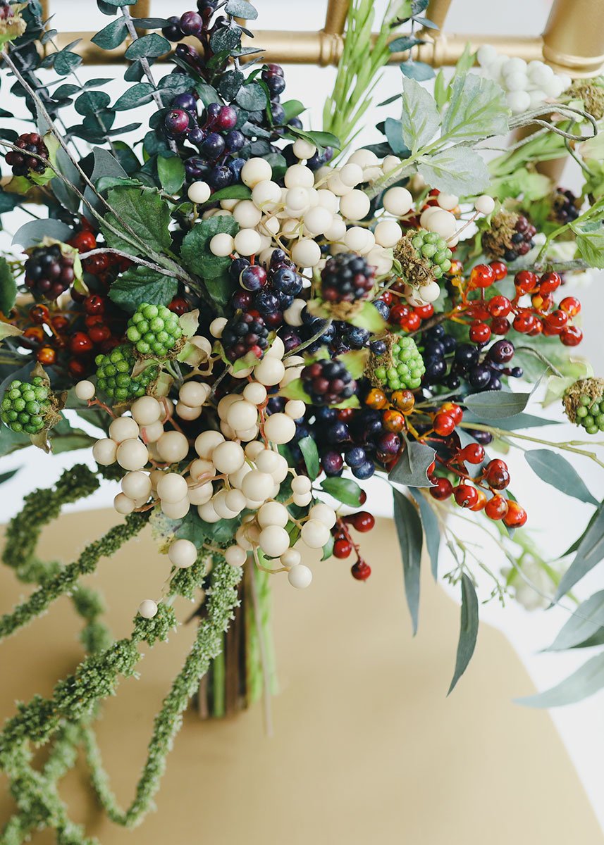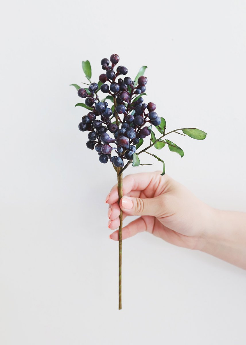 Find artificial berries to give your DIY wedding crafts extra beauty, like this faux berry spray in dark blue with purple tones and large berry clusters. These gorgeous blue berries will add stunning color and detail to your flower bouquets.