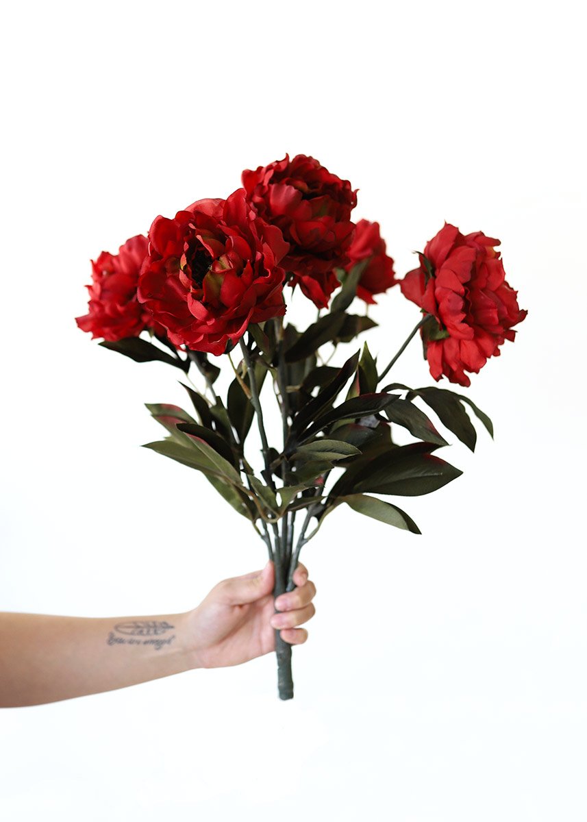 This beautiful Artificial Flowers peony bush in a rich crimson burgundy color is perfect for any fall flower arrangement.